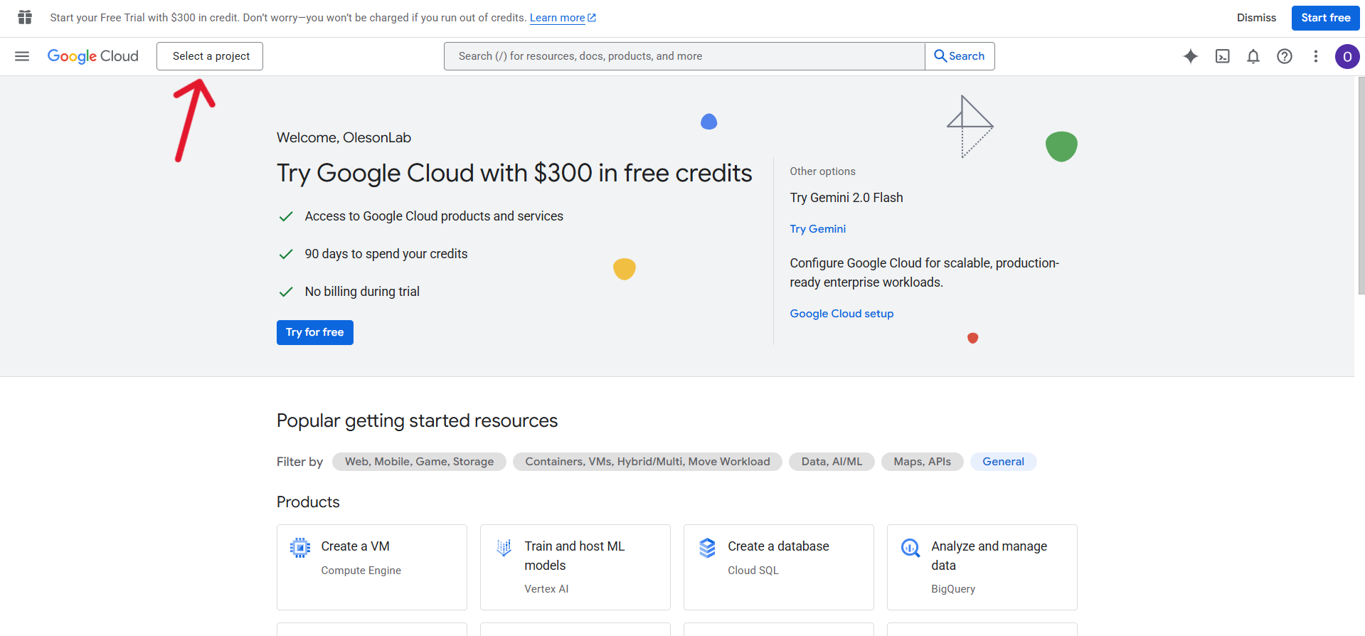 Navigate to Google Cloud Platform