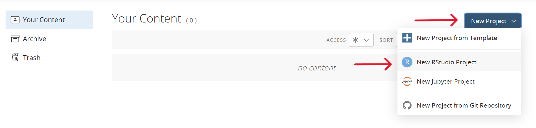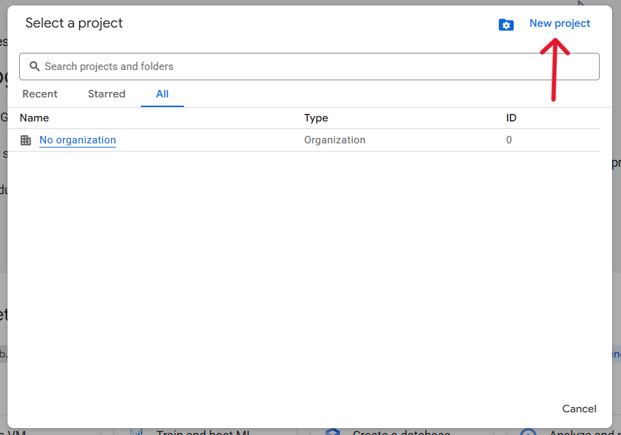Click on “Select a project” at top left